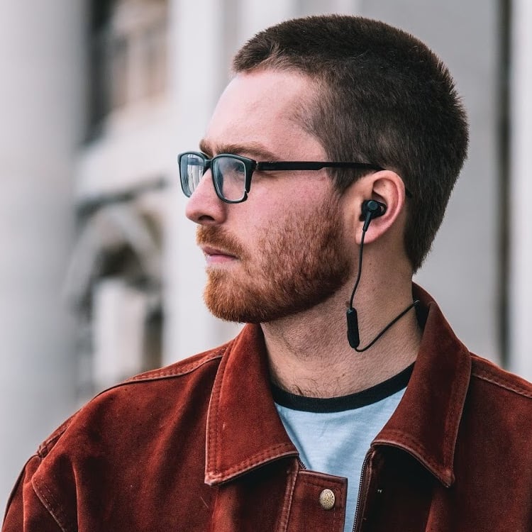 Lifestyle shots of me modelling new Tronsmart headphones shot with Qubeinc.