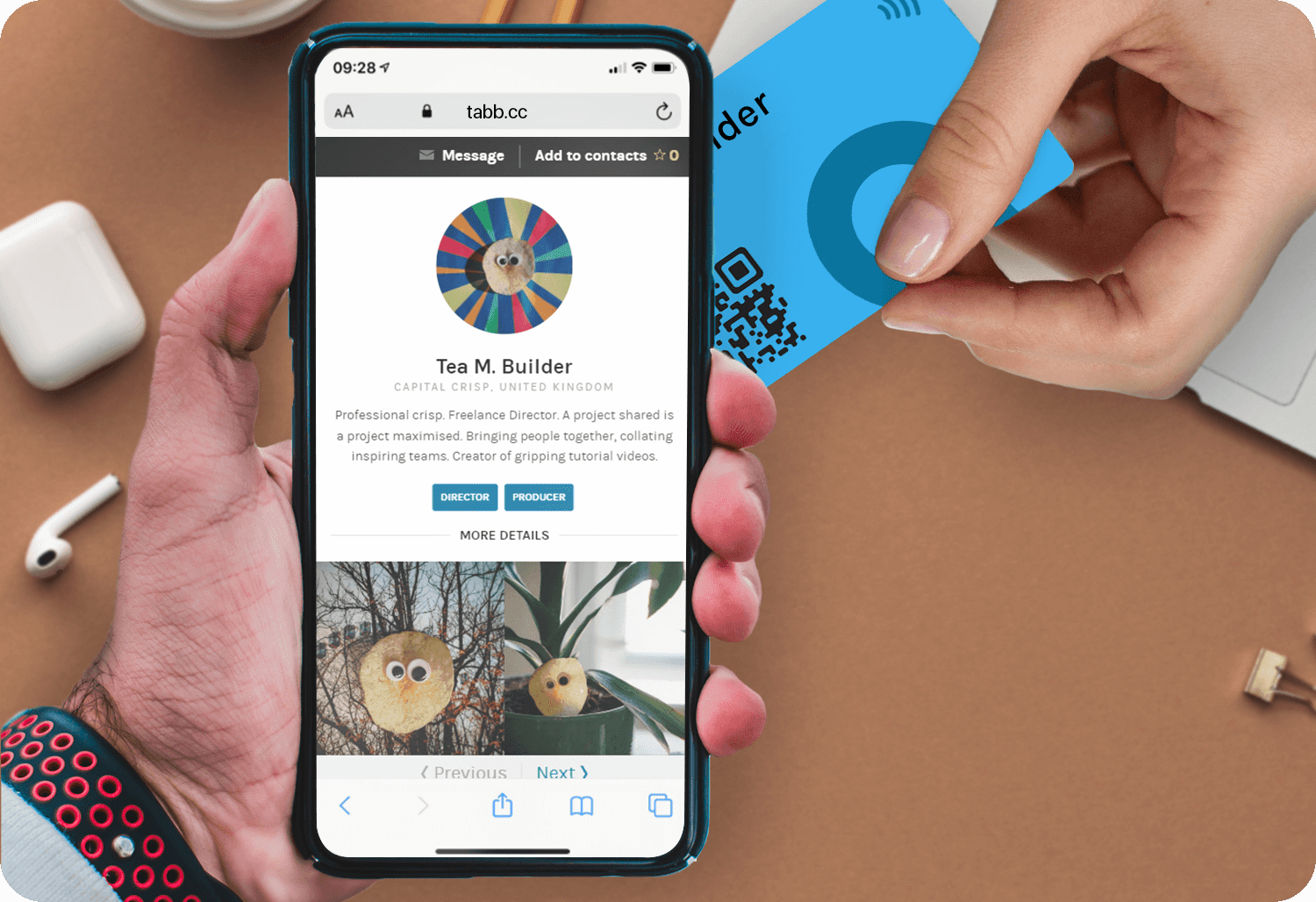 Your Tabb profile assists potential collaborators and clients to find you online. Tabb Cards take care of face to face.