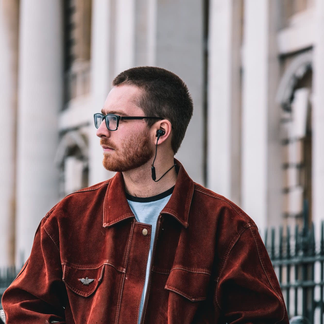 Lifestyle shots of me modelling new Tronsmart headphones shot with Qubeinc.